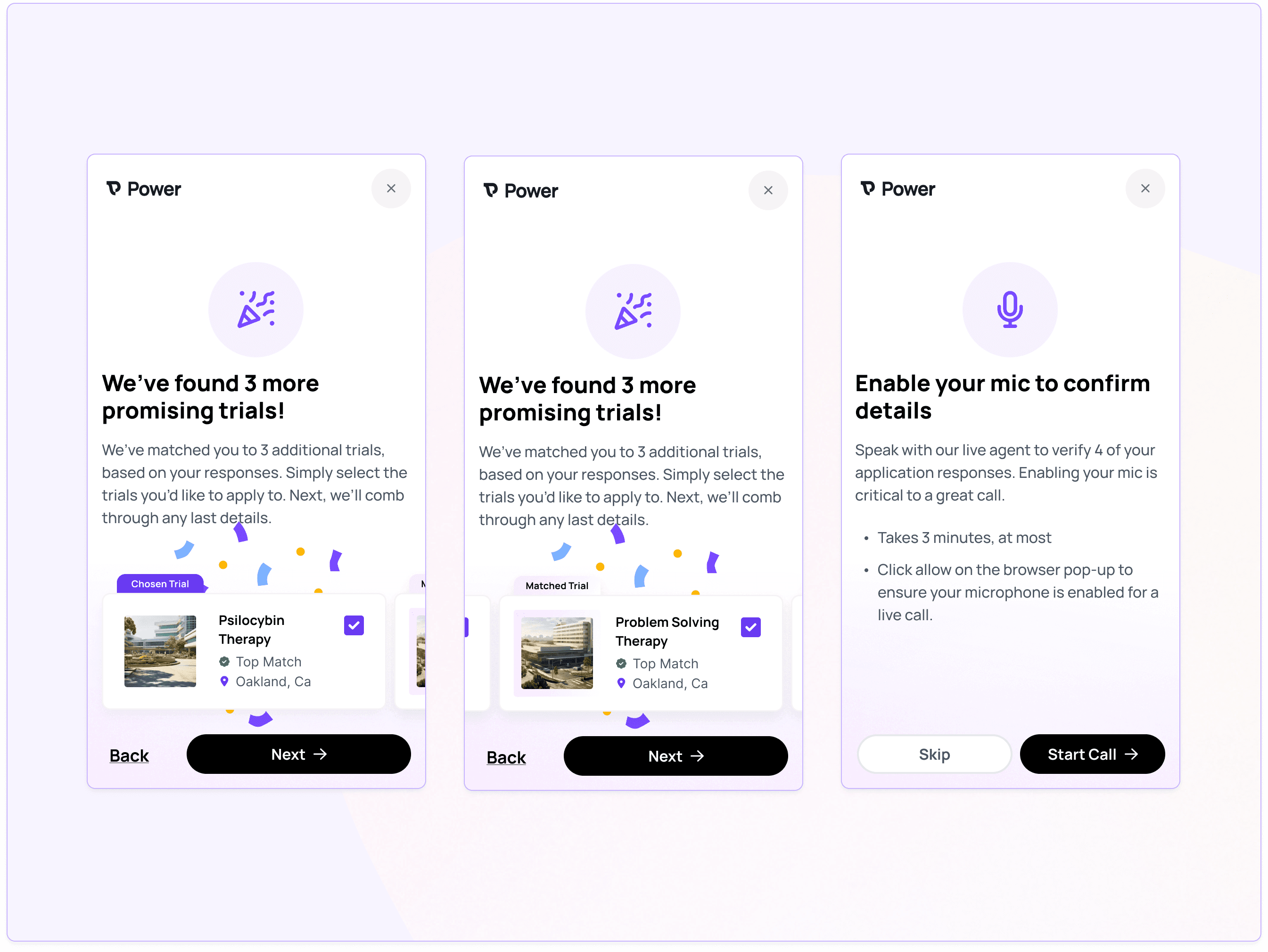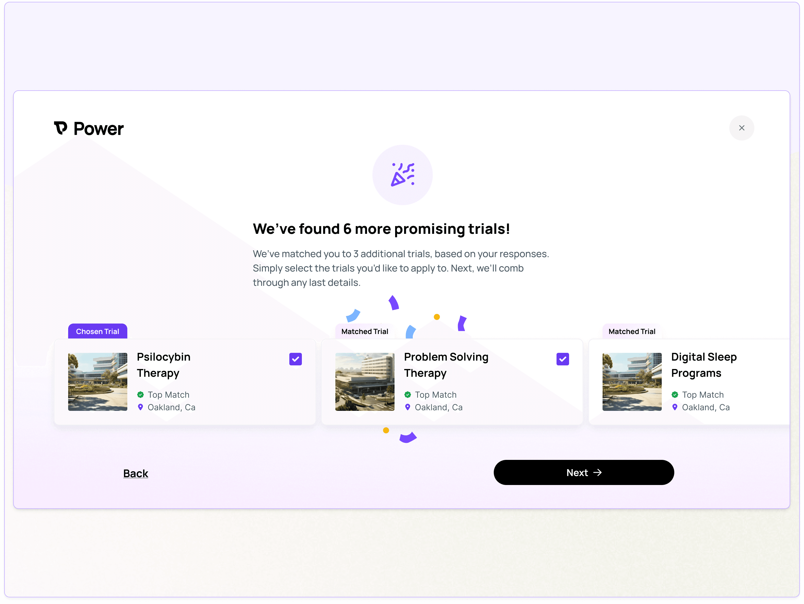 Power is a marketplace that connects patients with promising trials, accelerating the rate of research and recruitment in a meaningful way. Patients apply to trials through our search experience, and through our tools for research clinics that are designed to customize trial eligibility requirements, make a match based on efficient yet nuanced methods of assessing fit.