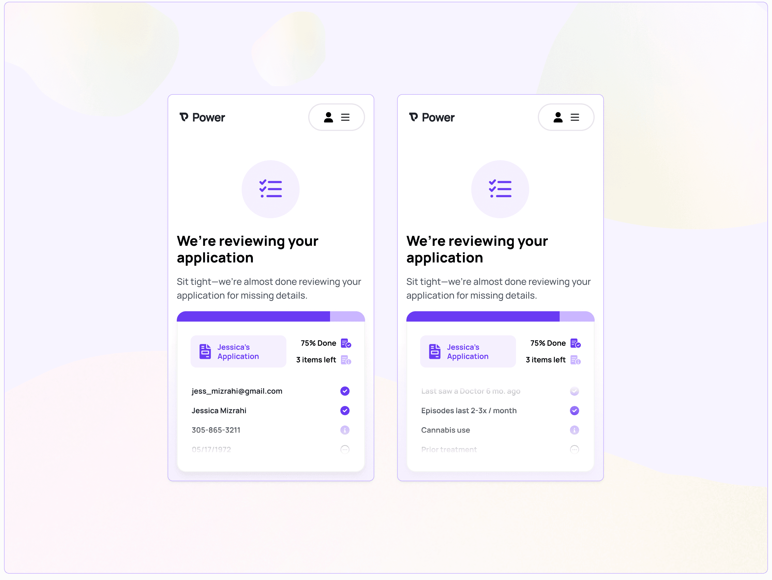 As soon as the application is submitted, we analyze their responses and identify any gaps that need to be addressed for a nurse or CRC to feel confident booking an eligible patient for a screening visit. We animate their responses and provide real-time feedback as we review the details, accompanied by a UI that communicates progress while verifying their application.