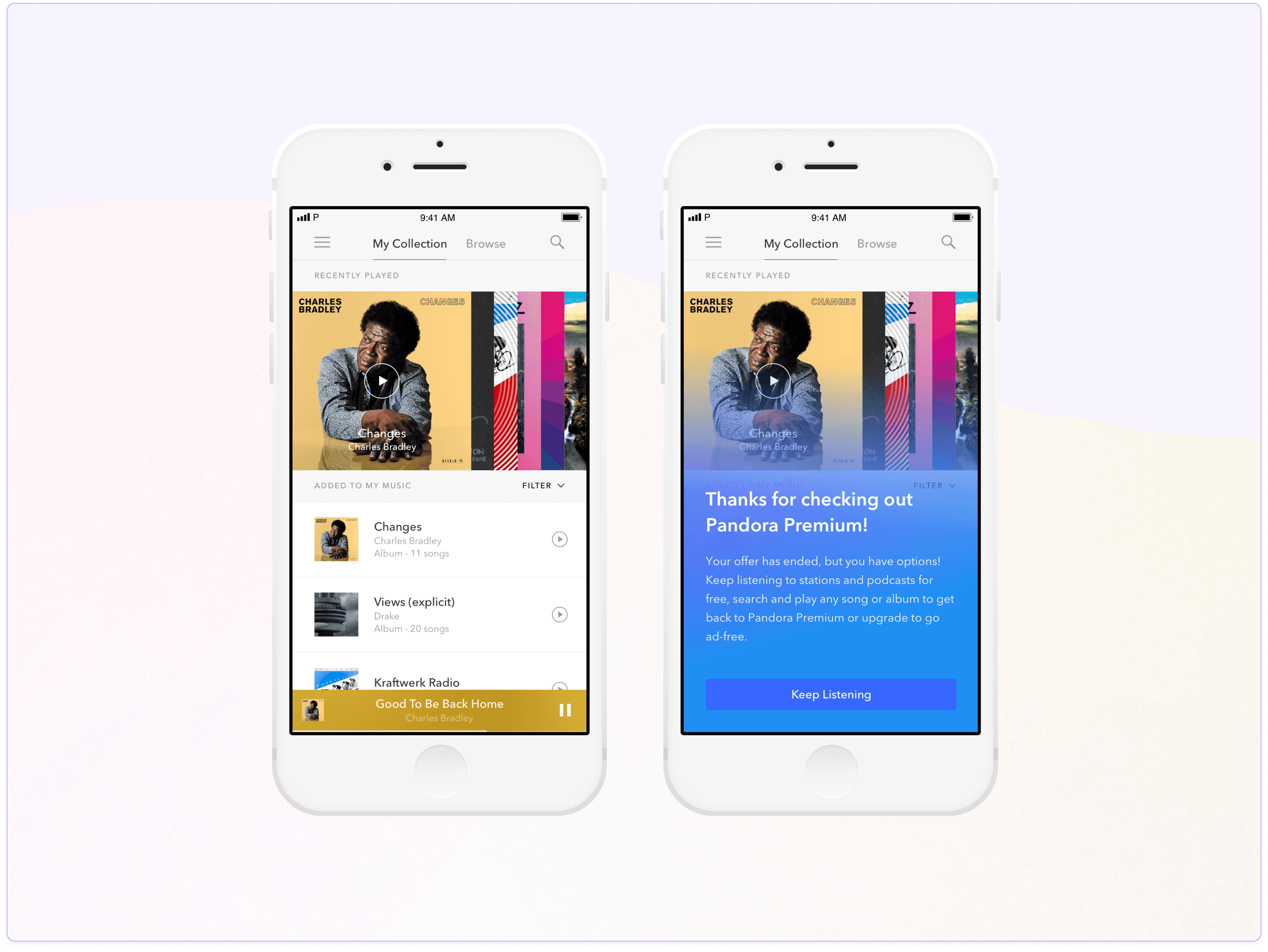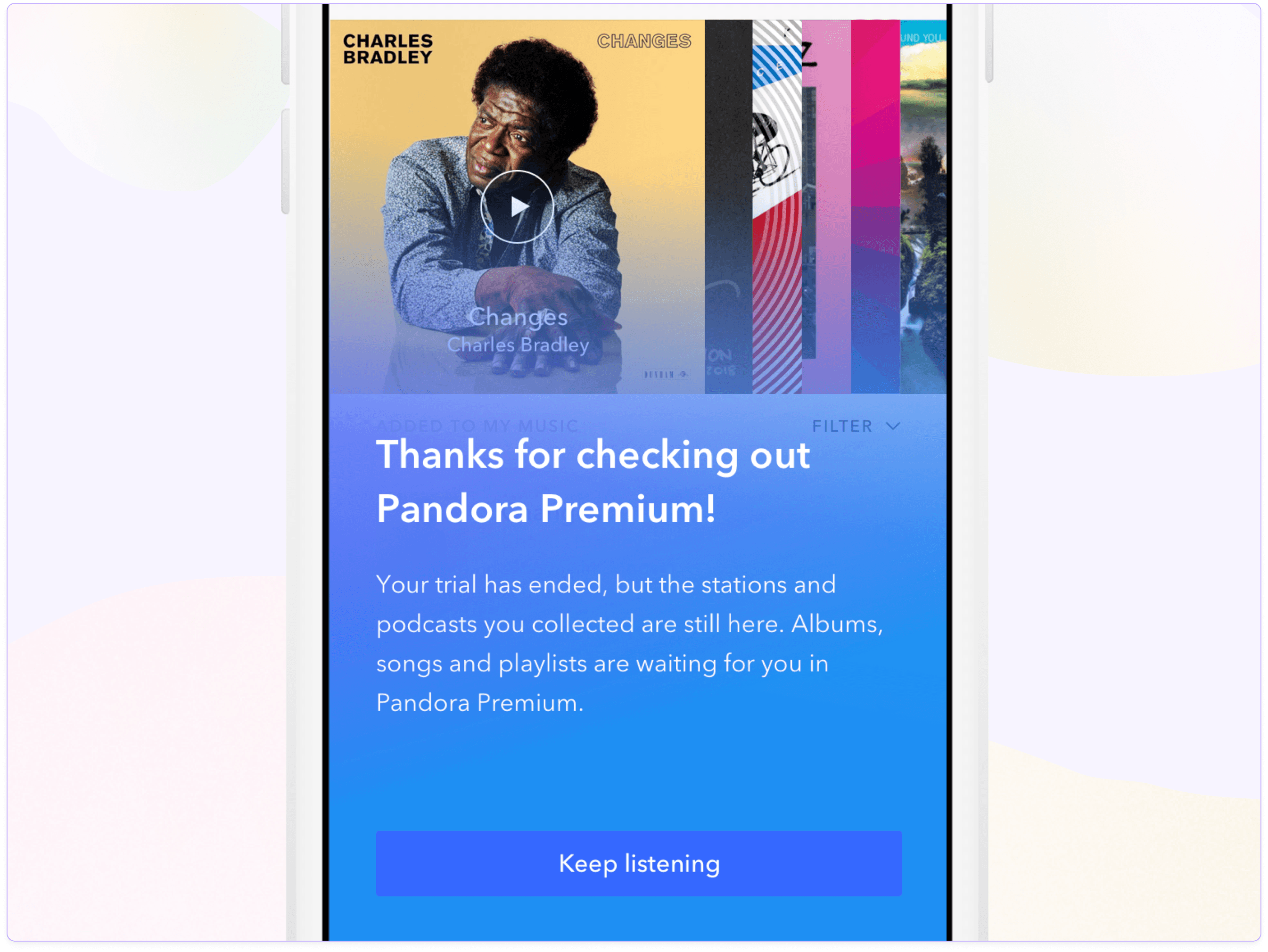 A closer look into the content design approach to the end of the 30-day experience of Pandora Premium.