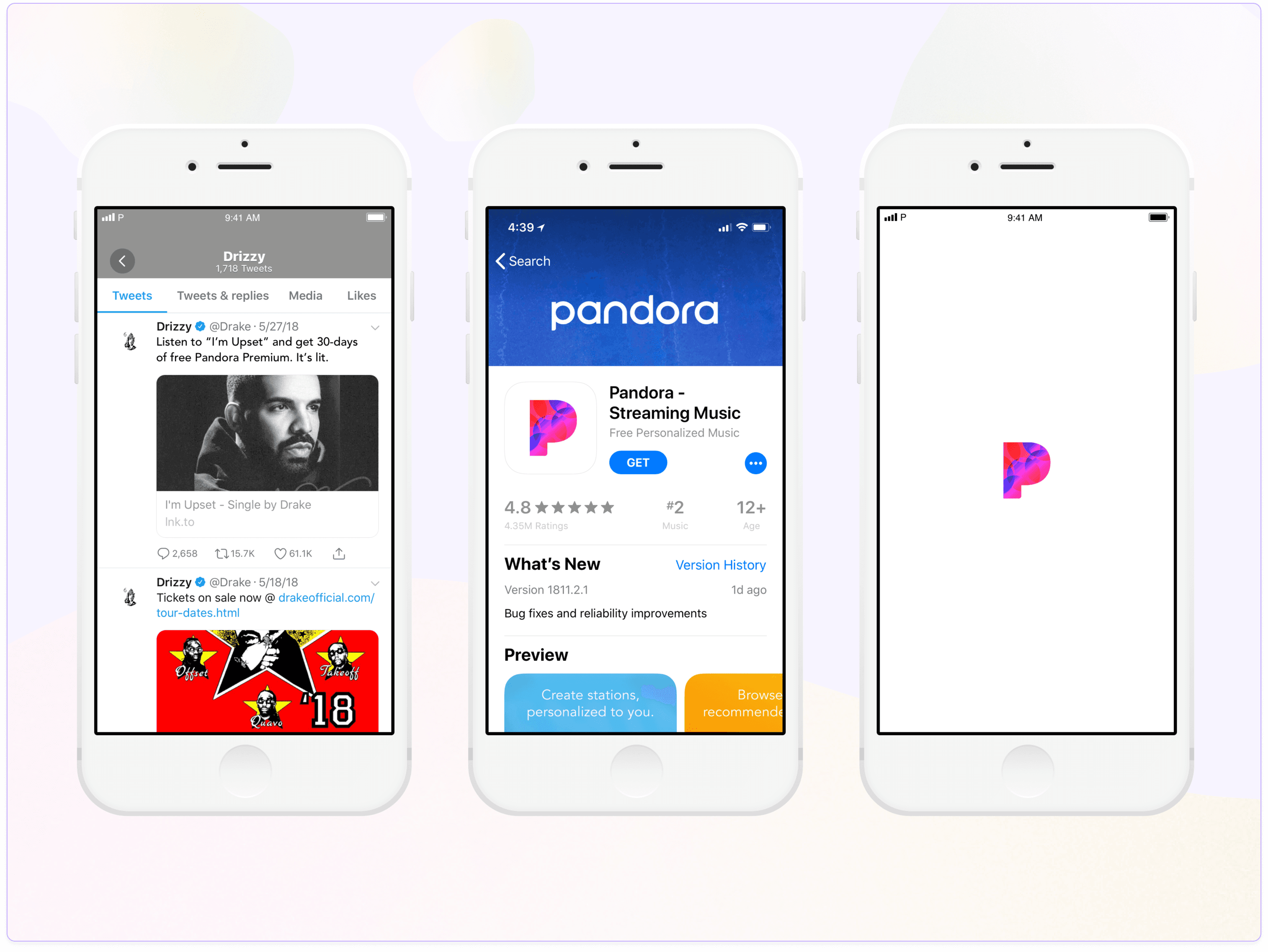 The first phase of the First Introduction project is campaign driven. Here’s a campaign where we would work with Drake, allowing users to listen to his track “God’s Plan” straight from twitter alongside a 30-day gift of Pandora Premium. This implementation affords us the ability to create personalized campaigns and drive specific markets to try our Premium offering for an extended period of time.