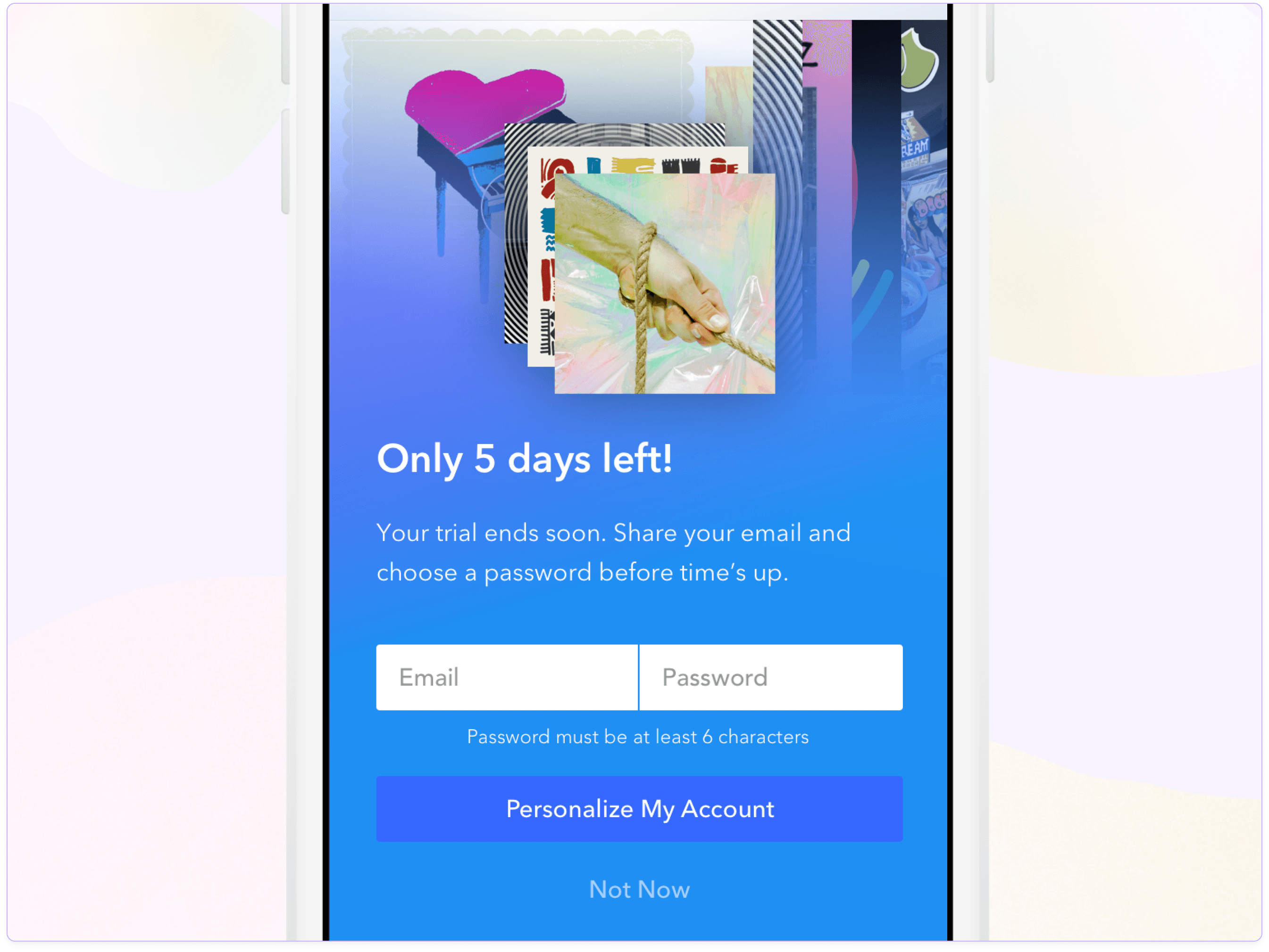 With five days remaining in their trial, if we haven’t collected their information yet, we’ll ask them once more to 'personalize' their account by providing credentials, emphasizing the urgency of the 30-day trial.